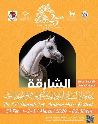 ينظم نادي الشارقة للفروسية والسباق خلال الفترة من 29 فبراير حتى 3 مارس، مهرجان الشارقة الدولي الخامس والعشرون للجواد العربي، بمشاركة 10 دول، وبالتعاون مع الهيئة الأوروبية لمسابقات جمال الخيل العربية الأصيلة (الإيكاهو).