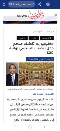 وكانت «خليجيون» قد نقلت عن مصادر برلمانية مصرية في تقريرها المنشور الأربعاء الماضي تفاصيل استعدادات لانتقال مجلس النواب إلى مقر الجديد في العاصمة الإدارية، تزامنا مع عقد أول جلسة في أروقة المقر في مطلع إبريل المقبل، حيث من المقرر أن يؤدي الرئيس المصري عبد الفتاح السيسي اليمين الدستوري بعد فوزه بولاية رئاسية ثالثة تنتهي في 2030.