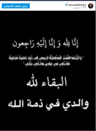 حيث كتبت سارة الزكريا، خبر وفاة والدها، على موقع التواصل الاجتماعي «انستجرام» قائلة: «الله يرحمه ويجعل مثواه الجنة العمر الك حبيبة قلبي».