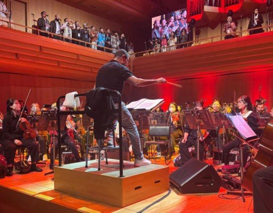 من جانبه أعرب المايسترو هاني فرحات عن سعادته بقيادة أوركسترا طوكيو الفيلهارموني والأوركسترا السعودي وضم مايزيد عن الـ150عازف في مزج موسيقي هو الأول من نوعه.