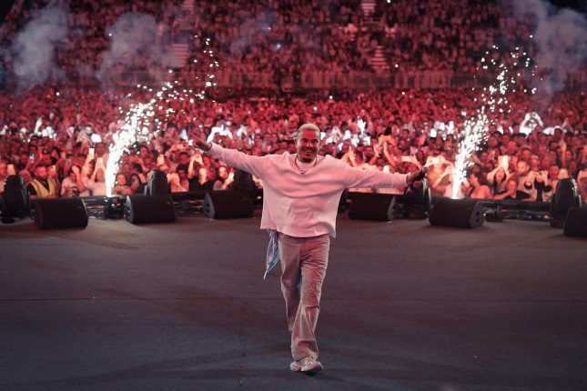 وختم الهضبة حفله بتحيه الجمهور وسط استعراضات من الألعاب النارية.