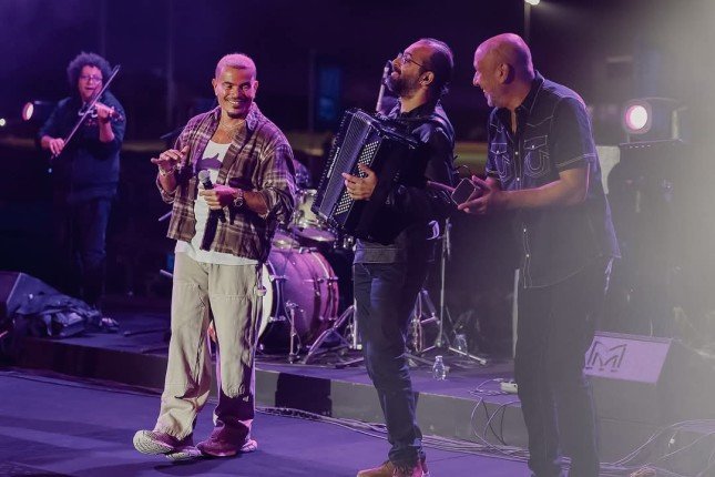 وصعد الفنان عمرو دياب إلى المسرح على أنغام أغنيته الشهيرة "يا أنا يا لأ" وسط تفاعل كبير من الجمهور.