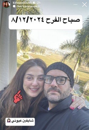 نشرت الفنانة كندة علوش صورتها مع زوجها الفنان عمرو يوسف وظهر على ملامحها البكاء وكتبت" صباح الفرح، شايفين عيوني".