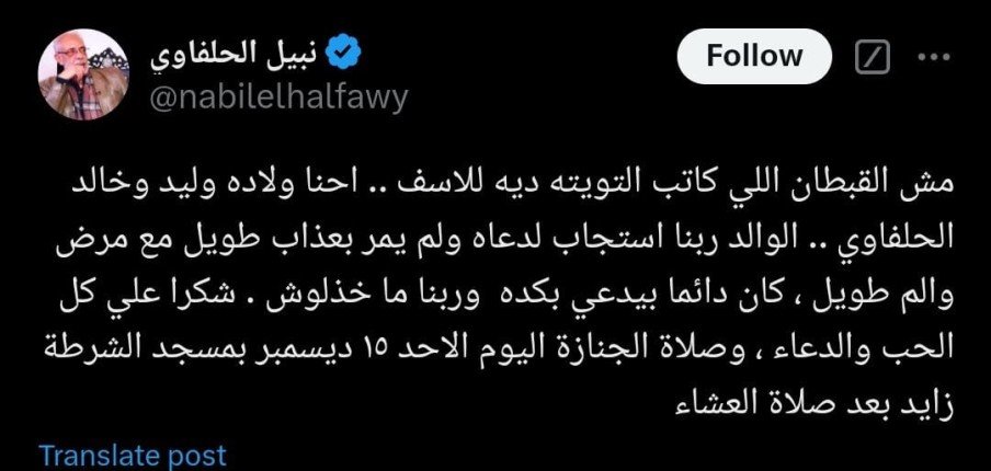 الجدير بالذكر انه سيتم اليوم تشيع جثمان الفنان الراحل من مسجد الشرطة بعد صلاة العشاء.