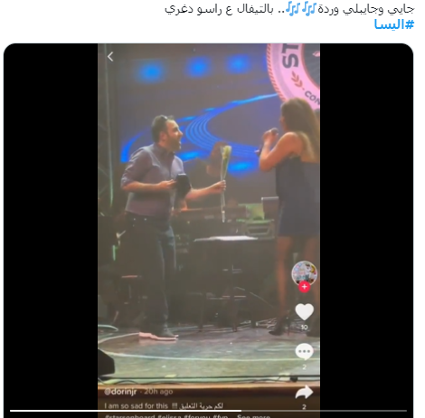 فيما قال متابع آخر: يا حرام طالع عالمسرح حامل وردة وبتحسوه خايف من ردة فعلها وهي استقبلتو كأن شي ولد صغير قدامها وحامل قنبلة.. يا عيب الشوم ولو يوسف ولو إليسا هيد من جمهورك يلي عملك نجمة صف أول مش هيك بتستقبليه".