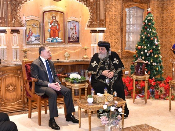 قام اللواء محمود توفيق وزير الداخلية في مصر بزيارة قداسة البابا تواضروس الثانى بابا الإسكندرية بطريرك الكرازة المرقسية بمقر الكاتدرائية بالعباسية لتقديم التهنئة لقداسته وجميع المواطنين المسيحيين بمناسبة الإحتفال بعيد الميلاد المجيد.