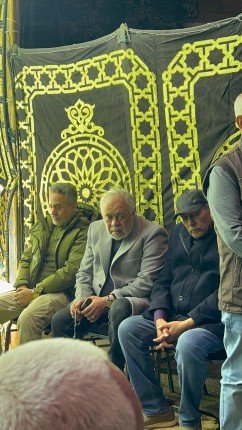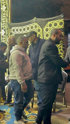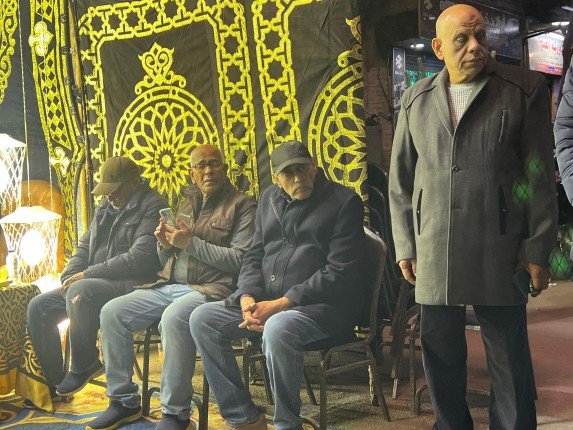 بالصور.. الفنان أحمد بدير يستقبل عزاء شقيقته في حدائق القبة