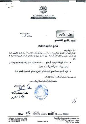 اتحاد الكرة المصري يلزم نادى مودرن بسداد مستحقات ورثة أحمد رفعت | مستند