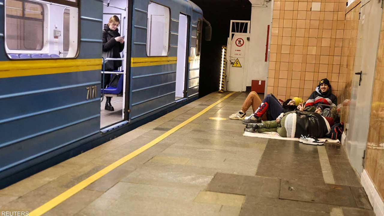 قضى الأوكرانيون ليلتهم الأولى في محطات المترو في العاصمة ومدن أخرى، وذلك خوفا من التعرض للقصف والتشويه نتيجة القتال الدائر في كييف