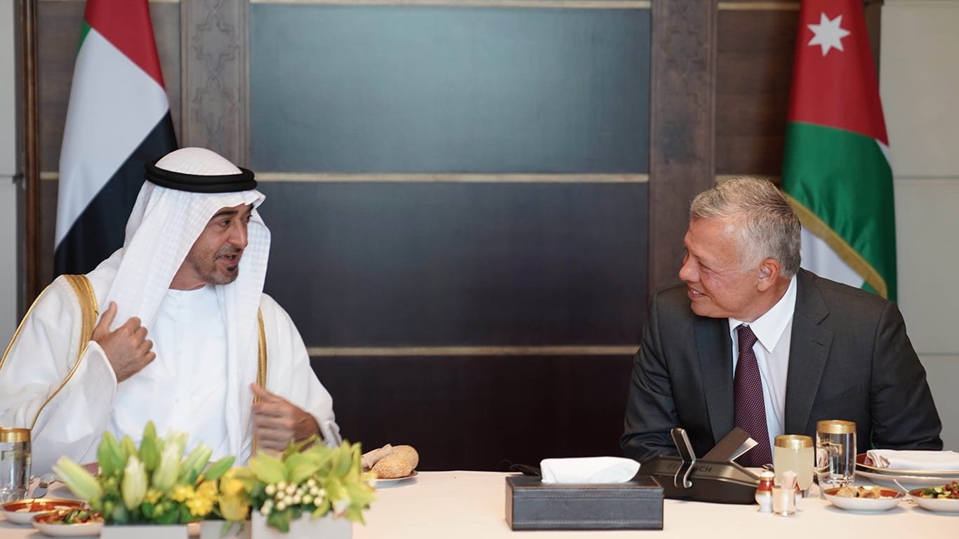 وفي 27 مايو الماضي، زار الشيخ محمد بن زايد آل نهيان، الأردن، وأجرى حينها مباحثات مع الملك عبد الله الثاني، تناولت العلاقات الأخوية الراسخة بين البلدين، وتعزيز التعاون الاستراتيجي، والتنسيق المشترك بما يحقق مصالحهما المتبادلة.