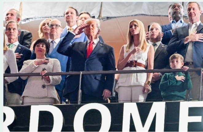 وقبل انطلاق المباراة، ظهر ترمب على أرض الملعب، وتقدم مدافع فريق تشيفس كريس جونز لتحيته. وبعد ذلك، أخذ مكانه في المقصورة الخاصة به، حيث صفق له بعض جماهير ملعب سيزرز سوبر دوم عندما ظهر لفترة وجيزة على شاشات الملعب العملاقة أثناء النشيد الوطني الأميركي.