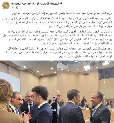 مصر تقدم رؤيتها لمستقبل قطاع غزة خلال لقاء عبد العاطي وماكرون في باريس