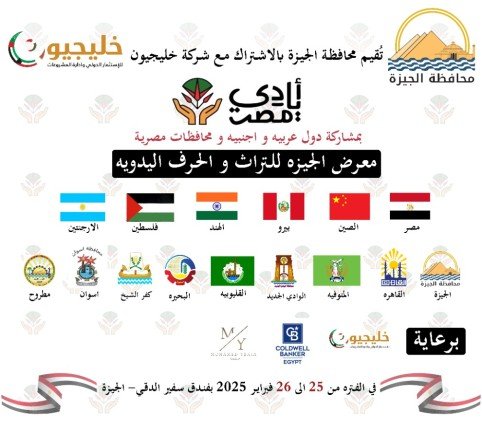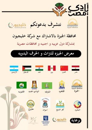 أعلنت محافظة الجيزة بمصر عن إقامة معرض الجيزة للتراث والحرف اليدوية تحت شعار «أيادي مصرية» بالاشتراك مع شركة خليجيون للاستثمار الدولي وإدارة المشروعات.