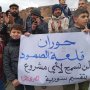ورفع المتظاهرون لافتات كتب عليها شعارات مثل: "حوران قلعة الصمود.. لن نسمح بأي مشروع لتقسيم سوريا"، و"رفض تام لأي تدخل خارجي في شؤون المنطقة".