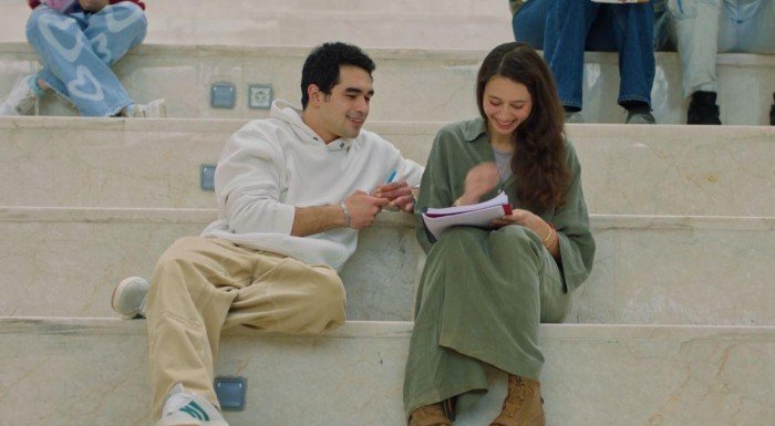 - عندما تتصل بها بدرة لتخبرها أنها رأتها في الملهى الليلي، تنكر وتقول إنها كانت في الجامعة