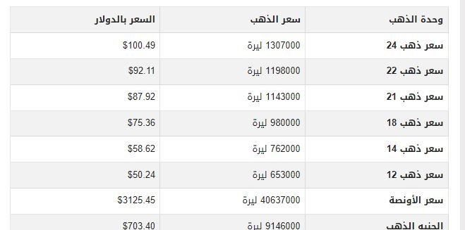 أسعار الذهب اليوم في سوريا بمحلات الصاغة