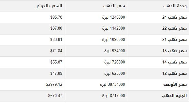 أسعار الذهب اليوم في سوريا بمحلات الصاغة