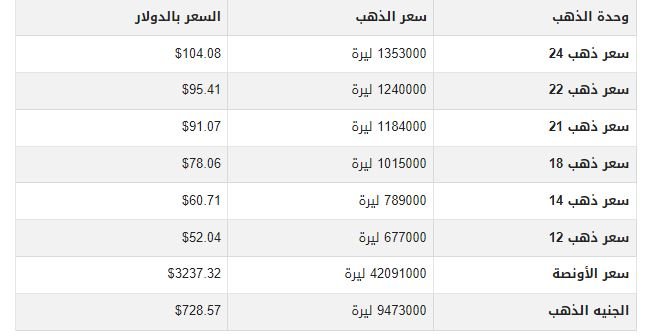 أسعار الذهب اليوم في سوريا بمحلات الصاغة