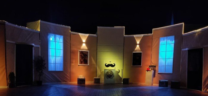 بدأ العرض بصوت الفنان محمد عبد العظيم، الذي يلعب في هذا العرض دور صوت الشنب، وكان أعرب عبد العظيم من قبل عن سعادته بالمشاركة في هذا العمل المسرحي، خاصة أن بدايته كانت عبر المسرح قبل أن يقدم أعمالا في الدراما التليفزيونية والسينما، مؤكدًا دعمه للمواهب الشابة والفرق المستقلة، مشيدًا بجهود فريق "الجدار الرابع للفنون" في تقديم رؤية فنية مبتكرة.