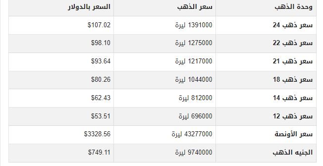 أسعار الذهب اليوم في سوريا بمحلات الصاغة