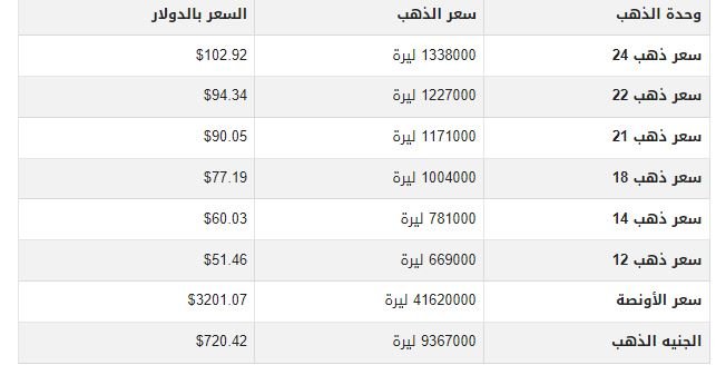 أسعار الذهب اليوم في سوريا بمحلات الصاغة