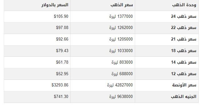 أسعار الذهب اليوم في سوريا بمحلات الصاغة