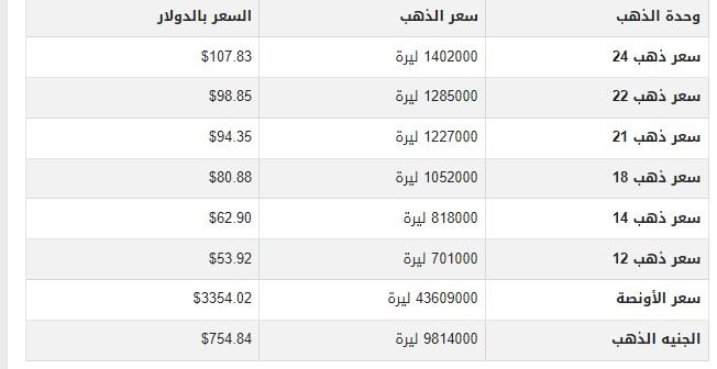 أسعار الذهب اليوم في سوريا بمحلات الصاغة