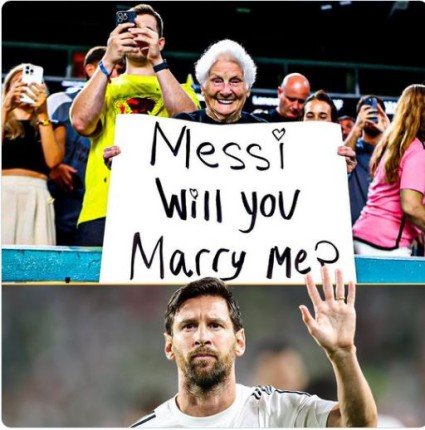 وخلال مواجهة بالميراس، التقطت عدسات الكاميرا مشهدا طريفا لمشجعة عجوز تحمل لافتة كُتب عليها: "ميسي، هل تتزوجني؟"، في مشهد سرعان ما اجتاح منصات التواصل الاجتماعي، وتداولته الجماهير في مختلف أنحاء العالم.