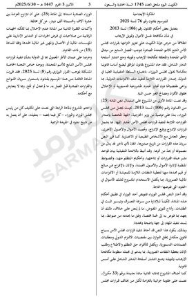 وتحدد اللائحة التنفيذية، التي تصدر تنفيذاً لأحكام هذه المادة، قواعد نشر القرارات المشار إليها أو إتاحتها، وأحكام التظلم منها، وقواعد إدارة الأموال والأصول المجمّدة، والإذن بالإفراج عن مبالغ أو قيم محددة منها لتغطية النفقات اللازمة للمعيشة وغيرها من الالتزامات المالية، وذلك بما يضمن قصر استخدامها على أغراضها، فضلاً عن سائر الضوابط والإجراءات اللازمة لتنفيذ أحكام هذه المادة».