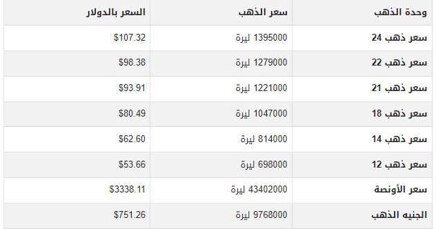 أسعار الذهب اليوم في سوريا بمحلات الصاغة