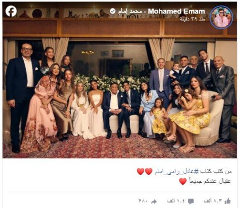 حيث كتب محمد إمام على الصورة التي نشرها وتوسطها الزعيم عادل إمام، قائلا: «من كتب كتاب عادل رامي إمام، عقبال عندكم جميعا».