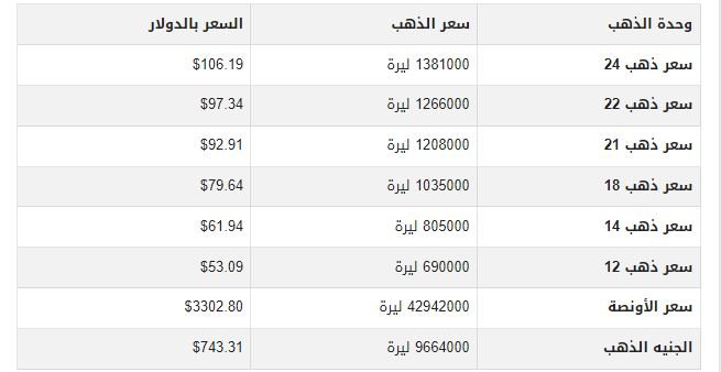 أسعار الذهب اليوم في سوريا بمحلات الصاغة
