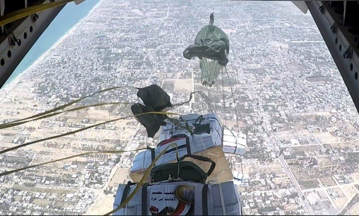عاجل.. مصر تسقط أطنانا من المساعدات جواً على قطاع غزة (صور)