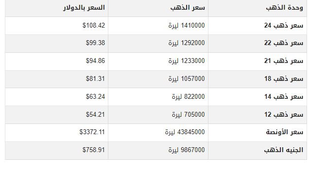 أسعار الذهب في سوريا اليوم الخميس 7 أغسطس 2025