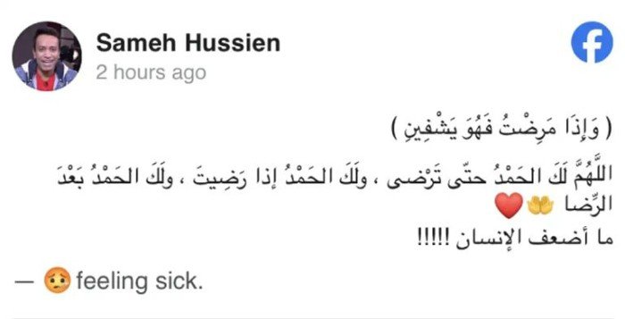 وأضاف الفنان في كلمات مختصرة تعكس حالته النفسية: «ما أضعف الإنسان!»، دون أن يكشف تفاصيل عن طبيعة الوعكة، وهو ما ضاعف من قلق جمهوره الذي تفاعل مع المنشور بالدعاء له بالشفاء العاجل.