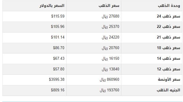 ارتفعت أسعار الذهب اليوم السبت 6 سبتمبر فى السوق اليمنى حيث تغيرت الاسعار بشكل مفاحىء وسط ارتفاعات للاسعار العالمية التى اثرت على اسعار الذهب فى كل الاسواق، ويعتبر الذهب من المعادن النفيسة ذات القيمة العالية، وهو محور اهتمام المستثمرين في بورصة الذهب أو تداول الفوركس والمقبلين على الزواج،