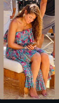 حيث ظهرت هيدي كرم، مرتدية فستان كاجوال بألوان صيفية مبهجة ليكشف عن جمالها ورشاقتها.