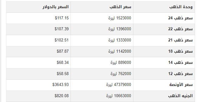 أسعار الذهب اليوم في سوريا بمحلات الصاغة