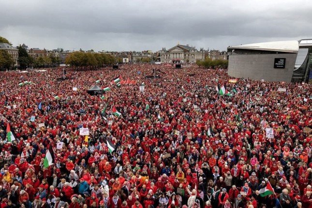 شهدت شوارع العاصمة الهولندية أمستردام، يوم الأحد، مظاهرة ضخمة شارك فيها نحو 250 ألف شخص، تعبيراً عن تضامنهم مع الشعب الفلسطيني واحتجاجاً على موقف الحكومة الهولندية الداعم لإسرائيل.