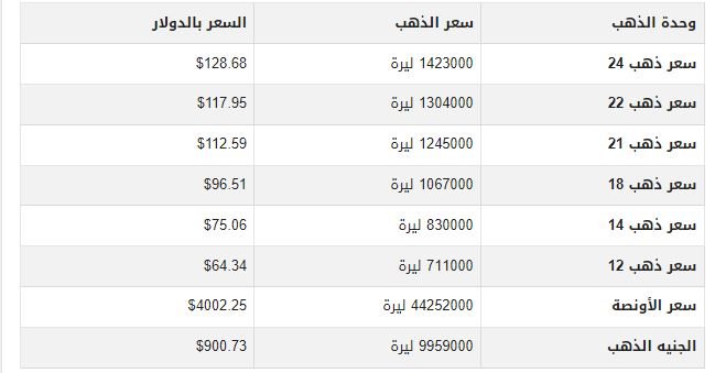 أسعار الذهب اليوم في سوريا بمحلات الصاغة