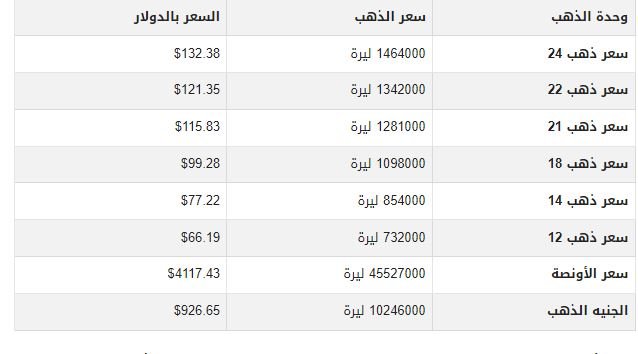 أسعار الذهب اليوم في سوريا بمحلات الصاغة