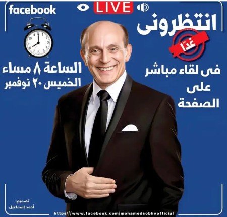 وأفادت الصفحة الرسمية لمحمد صبحي على موقع فيسبوك بعزمه الظهور في بث مباشر غدًا الخميس، في تمام الساعة الثامنة مساءً بتوقيت القاهرة، إذ سيُعبر عن امتنانه لجمهوره الحبيب، في خطوة لافتة تأتي تلبية لرغبة جمهوره في الاطمئنان عليه والحديث معه مباشرة.