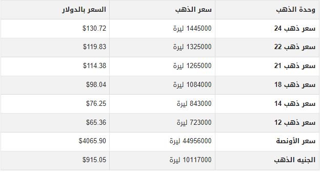 أسعار الذهب اليوم في سوريا بمحلات الصاغة
