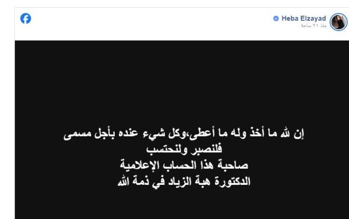 حيث كتب حسابها الرسمي لـ الإعلامية هبة الزياد: إن لله ما أخذ وله ما أعطى، وكل شيء عنده بأجل مسمى، فلنصبر ولنحتسب، صاحبة هذا الحساب الإعلامية الدكتورة هبة الزياد في ذمة الله".