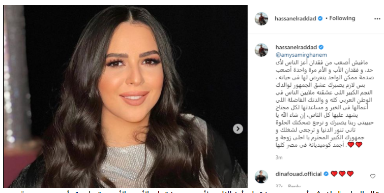 الرداد يوجه رسالة دعم لـ إيمى سمير غانم بعد فقدانها والديها