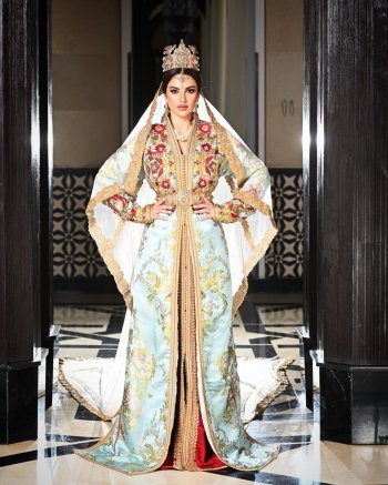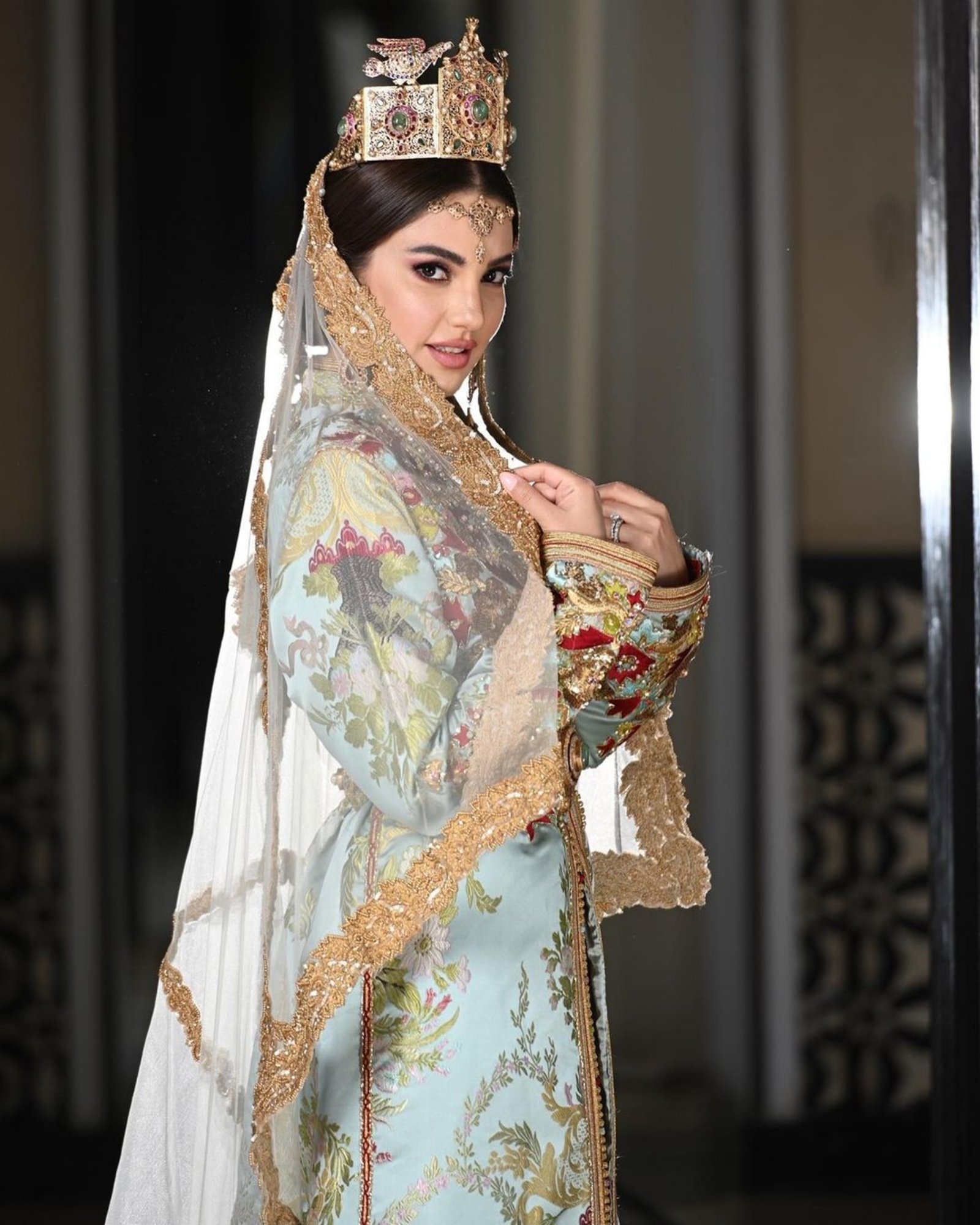 وظهرت درة بإطلالة مغربية مميزة، حيث إرتدت الزي التقليدي لنساء المغرب والمعروف بالـ"قفطان" المربي، بنقشة مميزة للغاية، ونسقت معه تاجاً رائعاً من الذهب على رأسها.