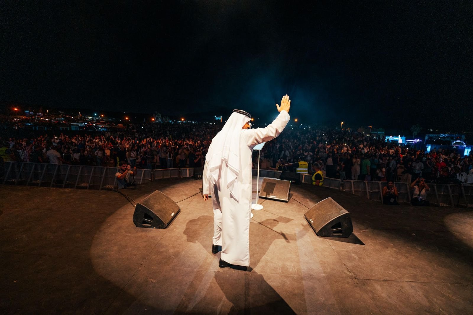 وعبّر الجسمي بعد صعوده على خشبة المسرح المميز الذي تجّهز بأفضل وأحدث الأجهزة والشاشات العالمية، بكلمات المحبة والاشتياق عن سعادته بلقاء الجمهور الأردني في هذا الحفل التاريخي بعد الغياب الطويل، وقال: "مساء الخير عليكم أحبابنا، اشتقنالكم وجيناكم من الإمارات وكلنا فرح بلقاكم في الأردن الغالي.. بوجودكم وحضوركم اليوم اكتملت فرحتنا، والأردن في القلب".