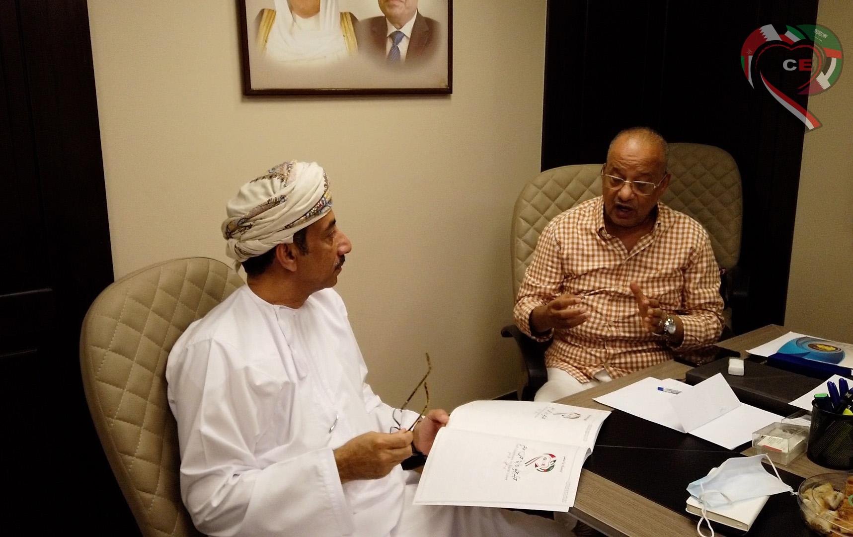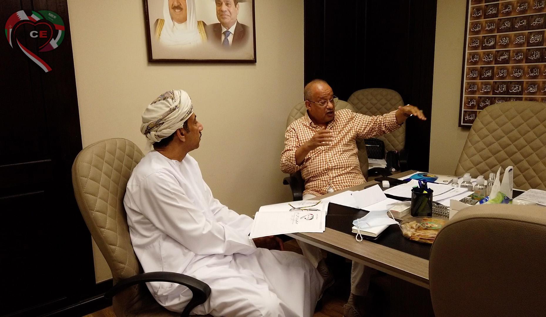 رحب الدكتور يوسف العُميري، رئيس جمعية خليجيون فى حب مصر، بمعالي السفير عبد الله الرحبي سفير سلطنة عُمان بالقاهرة، خلال زيارته المقر الإداري للجمعية بالجيزة.